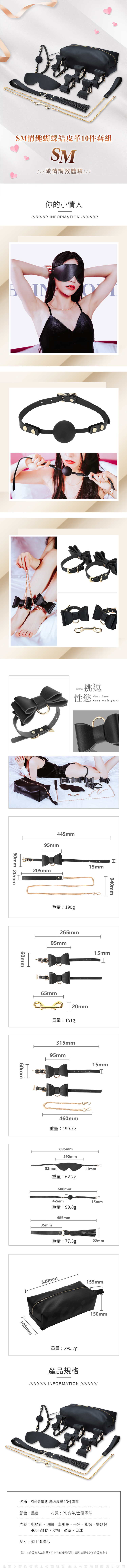 名稱:暗夜情網|SM情趣皮革蝴蝶結|10件調教套裝