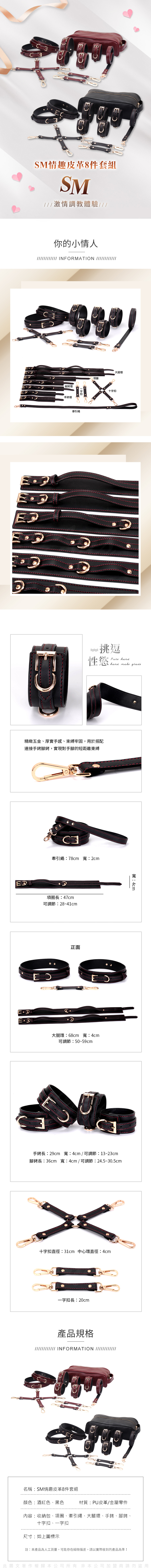 名稱:魅惑情夜|SM情趣皮革|8件調教套裝