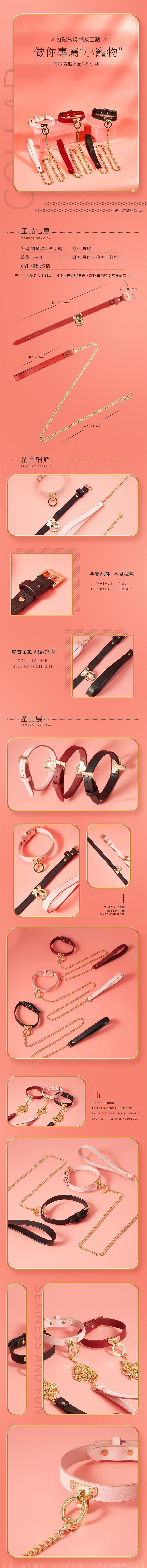 名稱:小寵物 精緻項圈 SM皮革頸鍊-粉