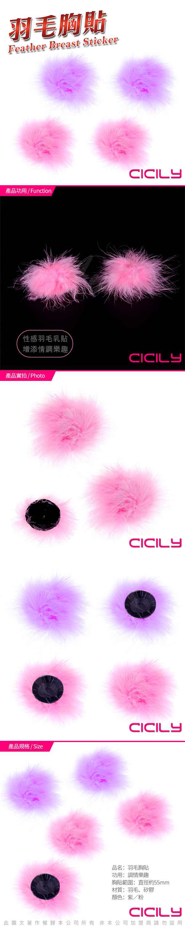 .商品內容:CICILY 毛球胸貼-紫