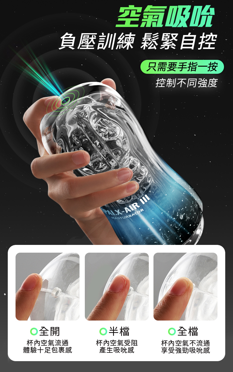 操作方式:三段式氣孔設計,隨心調節吸吮力度