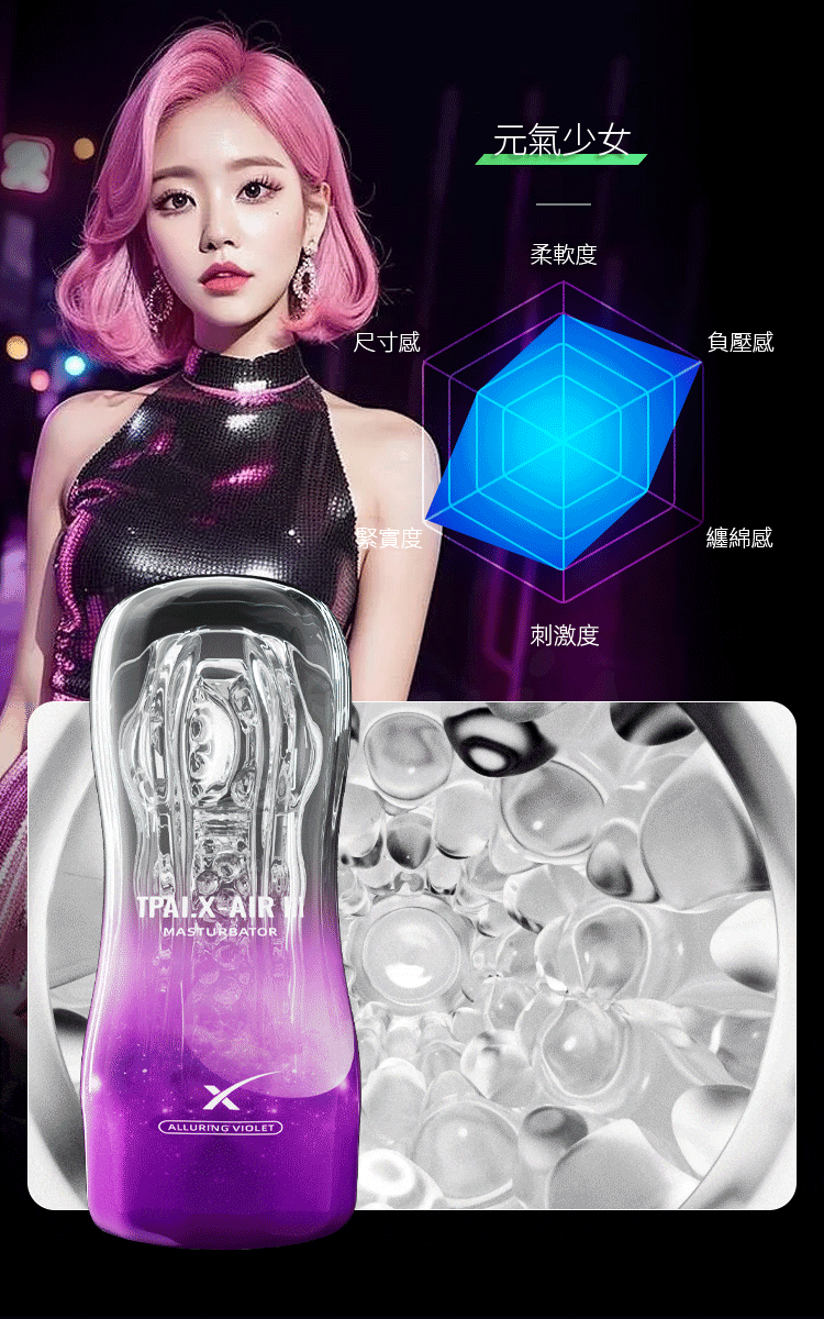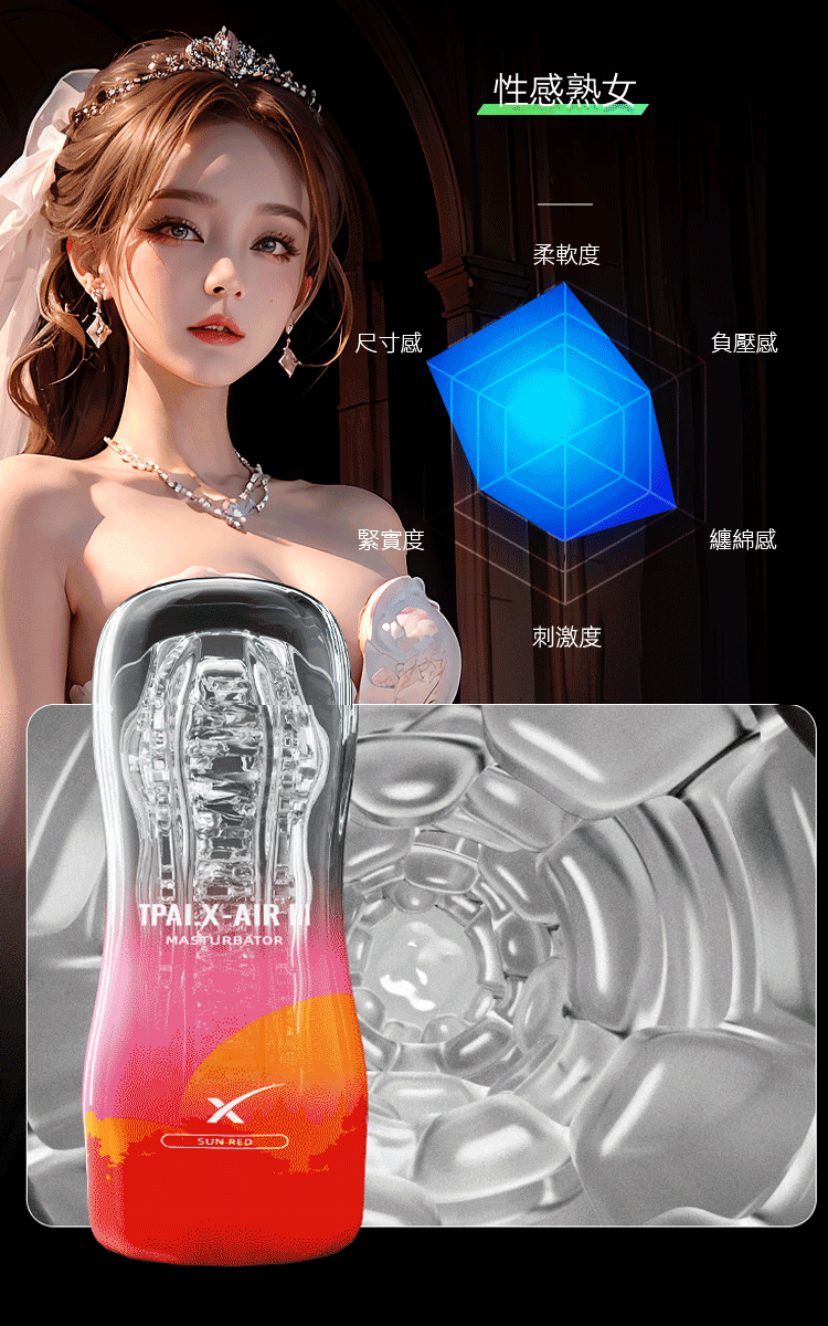 第三代彩虹飛機杯,以創新空氣收縮技術打造包覆吸吮的真實感受,配合高彈柔軟的凹凸紋理,提供極致貼合的享受,讓您在每次使用中感受彷彿真實般的觸感。