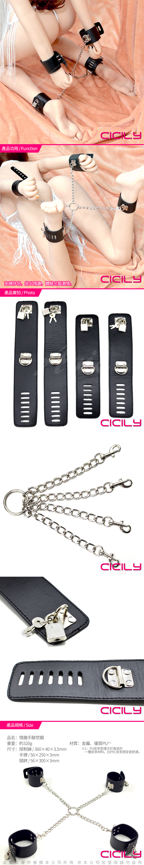 .商品內容:虐戀精品CICILY 霸情惡少 手腳捆綁 黑色三件套件