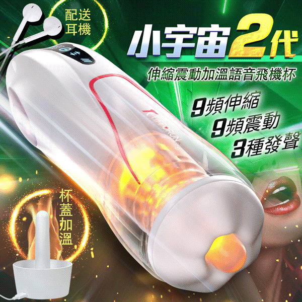 商品名稱:小宇宙2代|伸縮+加溫+震動+發聲+曖昧燈光|電動飛機杯