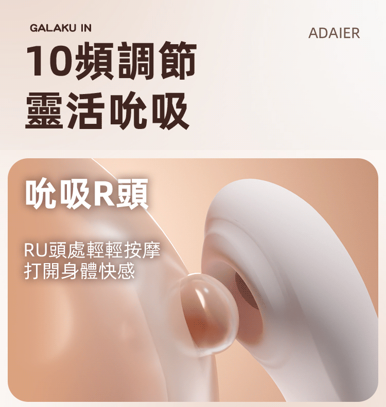 - 10頻吮吸模式:模擬輕柔吸啜到強勁吸附,完美觸動敏感地帶。