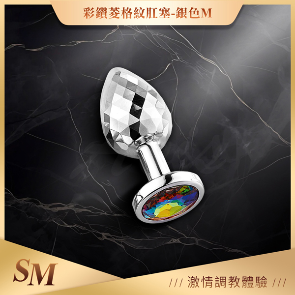 菱狀錐形|金屬後庭肛塞|中 銀色彩色鑽