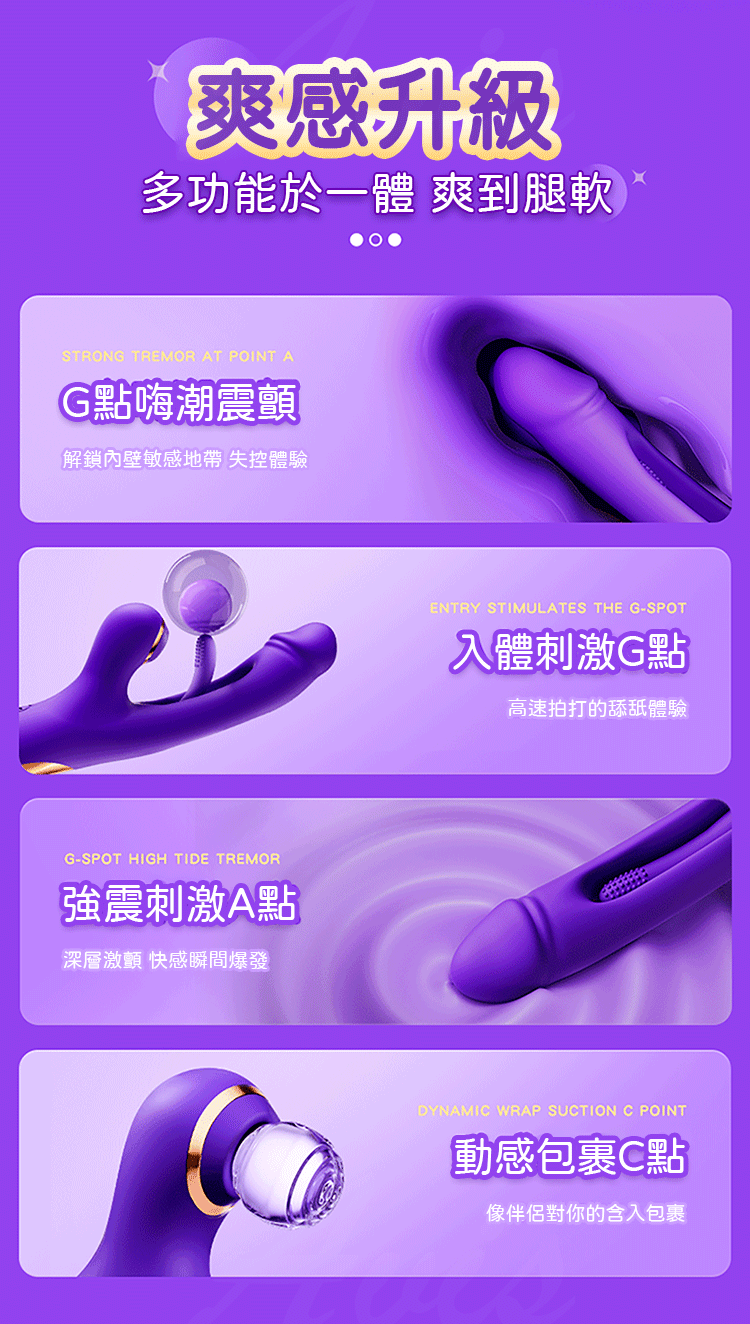 一機滿足內外刺激,隨心解鎖敏感地帶,從輕柔到強烈,讓你徹底失控。