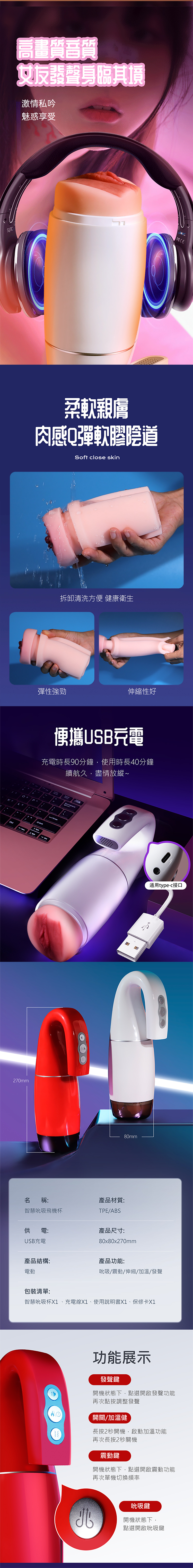 商品功能:吮吸/加溫/震動/語音