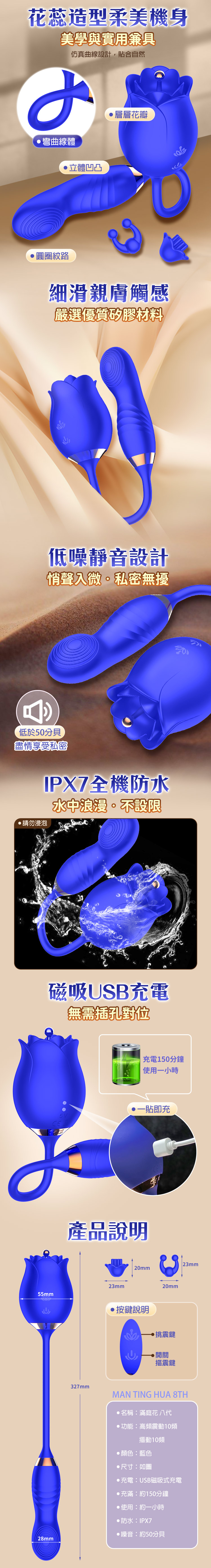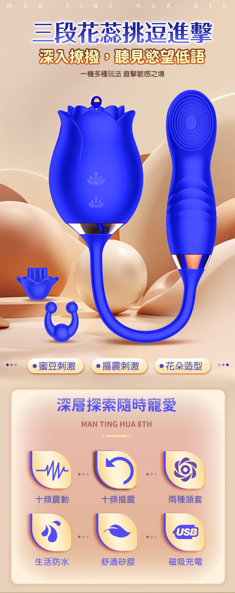 名稱:滿庭花8代|花樣撩撥|扣動震動棒 寶藍