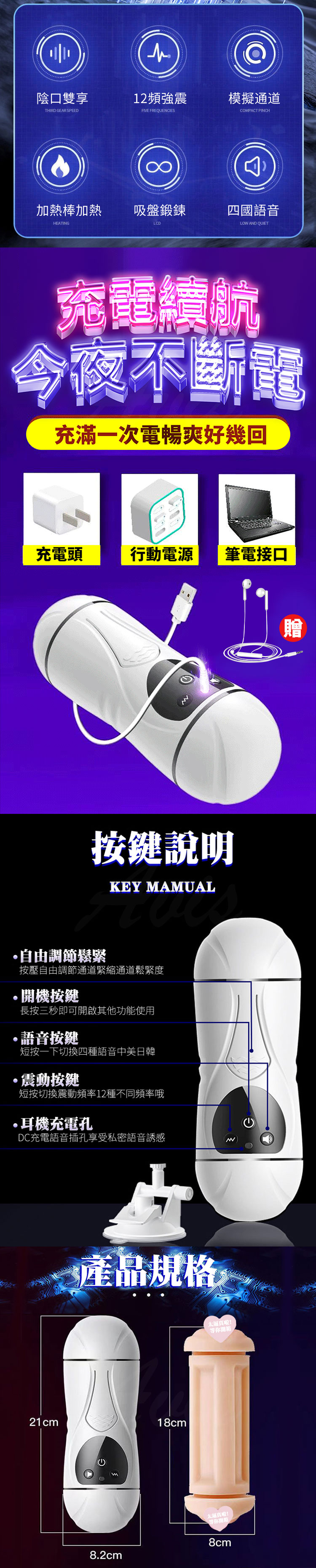 商品功能:雙穴可插/震動/語音