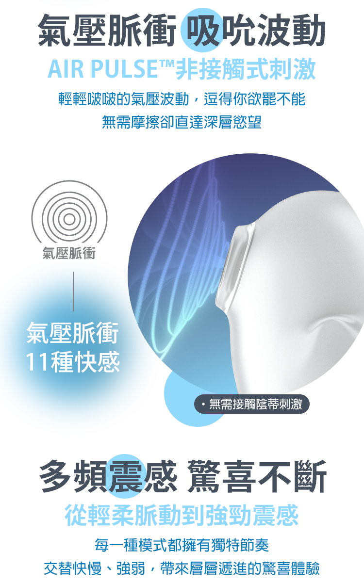 內建 吸吮+震動 2in1 功能,將細膩的氣流吸力與酥麻的震動結合,帶來雙倍愉悅體驗。無論是溫柔探索,還是急速挑逗,都能滿足你的渴望。