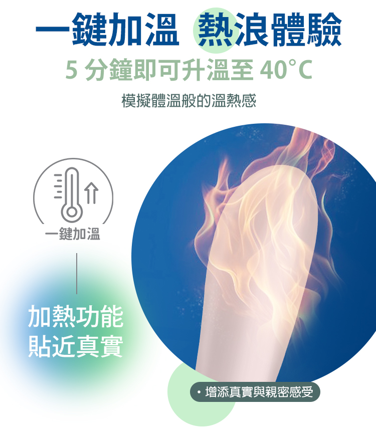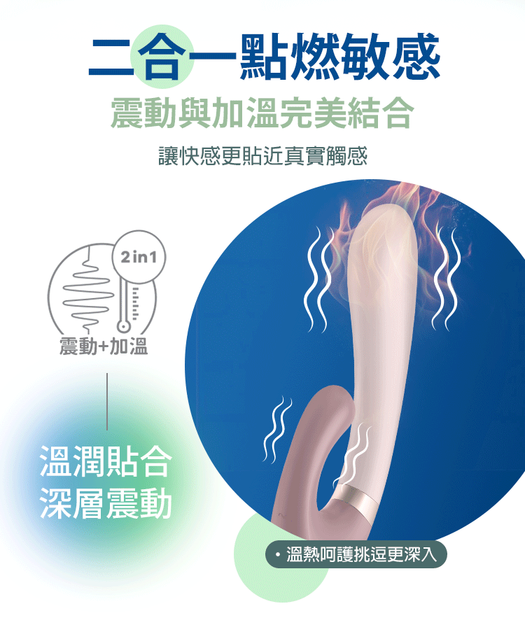 2 in 1 功能:震動 + 加溫,溫熱觸感更親膚