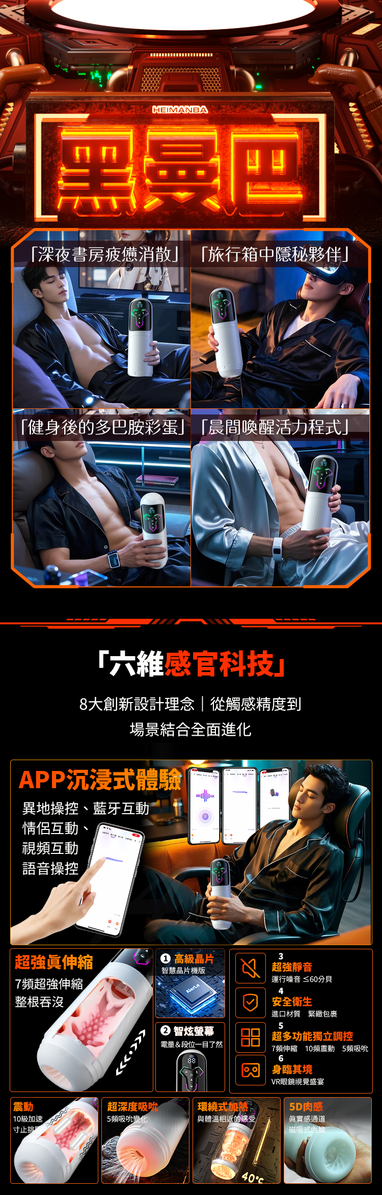 黑曼巴|吸吮 伸縮 震顫|狂暴電動飛機杯 智能款