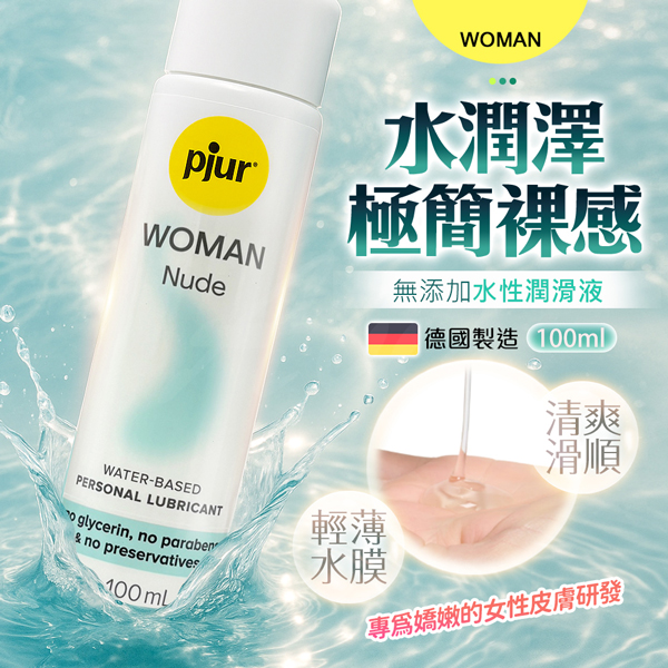 源自德國的 pjur,始終以細膩的呵護為核心理念。Woman Nude 專為女性嬌嫩肌膚而生,以零添加的純淨配方,帶來柔滑、自然又安心的親密體驗。